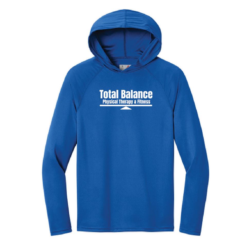 A top choice for sports and exercise, this hooded long sleeve tee combines a comfortable fit with performance features such as moisture wicking and sun protection.